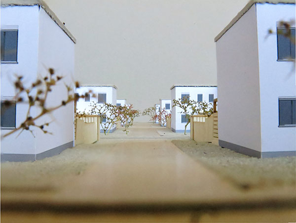 Le point de départ du projet est l'application, à la ville de Lausanne, du schéma du Trabantenprinzip mis au point par Ernst May pour la ville de Francfort dans les années 1920. Sur six sites identifiés, l'agglomération pourrait gagner environ 2100 logements et 7800 hab. à l'horizon 2025. Le projet s'intéresse au cas de Vufflens-la-Ville, petite commune de 1284 hab. située au Nord-Ouest de Lausanne, composée en majeure partie d'habitations et de fermes, où les services usuels, tels que poste, restaurant ou épicerie, n'existent plus. Le projet prévoit l'implantation d'un nouveau quartier d'habitation a part entière, inspiré par les Siedlungen construites à Francfort par Ernst May et à Berlin par Bruno Taut, pendant la période de l'entre-deux-guerres. Au total, ce sont 318 logements pour une moyenne de 1175 hab. qui sont prévus. La forme urbaine tient compte des caractéristiques du site, à savoir les deux axes majeurs et la végétation qui le structurent, ainsi que la topographie naturelle qui a amené les barres de logements en arc de cercle à la suivre avec respect. Un travail particulier a été mené concernant l'aspect chromatique des bâtiments et, par conséquent, des rues, afin de rendre ce quartier vif et accueillant. De plus, la disposition et la géométrie des ouvertures, les seuils entre intérieur et extérieur, la vision du jardin privé comme une pièce faisant partie à part entière de la maison, l'utilisation d'un système constructif simple et efficace, et la réintroduction de services quotidiens dans un lieu stratégique du site ont également été pensés et contribuent à la bonne conduite du projet.