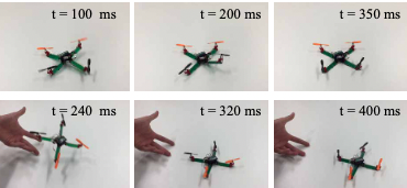 Origami manufacturing has led to considerable advances in the field of foldable structures with innovative applications in robotics, aerospace, and metamaterials. However, existing origami are either load-bearing structures that are prone to tear and fail if overloaded or resilient soft structures with limited load capability. In this manuscript, we describe an origami structure that displays both high load bearing and high resilience characteristics. The structure, which is inspired by insect wings, consists of a prestretched elastomeric membrane, akin to the soft resilin joints of insect wings, sandwiched between rigid tiles, akin to the rigid cuticles of insect wings. The dual-stiffness properties of the proposed structure are validated by using the origami as an element of a quadcopter frame that can withstand aerodynamic forces within its flight envelope but softens during collisions to avoid permanent damage. In addition, we demonstrate an origami gripper that can be used for rigid grasping but softens to avoid overloading of the manipulated objects. Link to full text: http://robotics.sciencemag.org/content/3/20/eaau0275.full?ijkey=hi0PDHjoqn0lQ&keytype=ref&siteid=robotics
