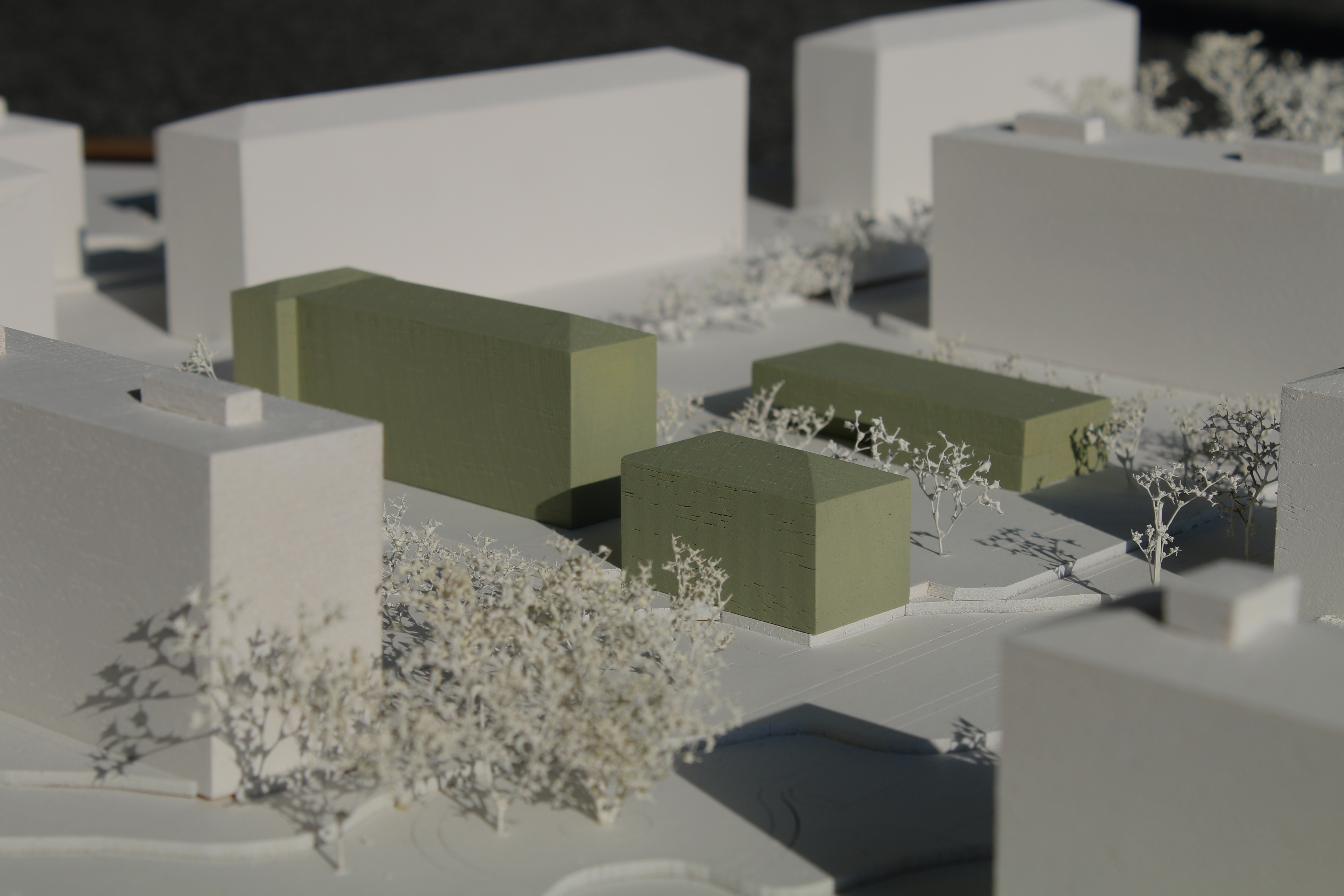 Jouxtant la gare de Renens, le quartier d’Epenex est enclavé entre les différentes infrastructures ferroviaires et autoroutières. A ces barrières s’ajoutent des haies, des murs, des barricades qui renforcent sa fermeture. De plus, une grande partie des accès piétons sont en réalité des voies de transport individuels motorisés empruntées par les piétons. Le site cache en son centre une école désaffectée en 2019. Depuis, l’absence d’un équipement public social, un manque de vitalité et de dynamisme se font sentir au sein du voisinage. Le but du projet est de requalifier cet espace en un cœur de quartier hospitalier par un « revoisinage » en profondeur qui permette aux trois volumétries pavillonnaires existantes de se révéler. La mixité sociale découle des programmes communautaires : une maison de quartier, une biblio-ludothèque et une cafétéria. En outre, une extension nouvelle intègre la place et permet de créer la centralité recherchée. Parce qu’il comprend un espace dédié aux aînés et une crèche, ce nouvel équipement public favorise l’échange intergénérationnel. La position des bâtiments, anciens et nouveau, permet de préserver un tissu poreux et assure les flux de mobilité douce. Ainsi reconfiguré, ce cœur de quartier recentre la collectivité et rejette le trafic automobile à la limite du site. La place fédère tandis qu’autour du bâti, un espace de sport, un parc et une cour stabilisent le lien entre les quatre pavillons. L’habitant se voit ainsi remis au centre du projet.