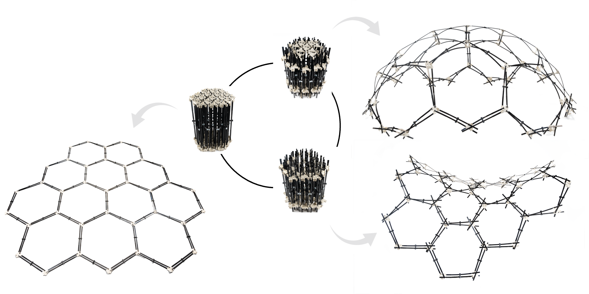 We propose Reconfigurable Umbrella Meshes (RUMs), a new class of preassembled deployable structures. A RUM has a compact rest state that can be easily altered to deploy into different bending-active 3D target shapes. RUMs consist of elastic beams and rigid plates connected by hinge joints and can be assembled in a stress-free fabrication state. The key principle of a RUM is that it encodes the desired deployment shape in the height distribution of its constituent cells. Reconfigurability is achieved by introducing sliding joints to connect the elastic beams with the rigid plates to allow adapting the cell heights. We demonstrate that even for small variations in the cell heights, RUMs can capture a diverse range of shapes. Assembled from identical cells that can be mass-produced, a RUM can deploy into several desired shapes, which makes them well suited for reusable temporary structures. We provide a computational design tool based on physical simulation, where users can interactively edit cell heights to explore achievable deployed shapes. Numerical optimization enables designers to easily navigate between the reconfigurable design parameters and the deployed shape space. We validate our approach with a physical prototype and demonstrate its various deployed states.