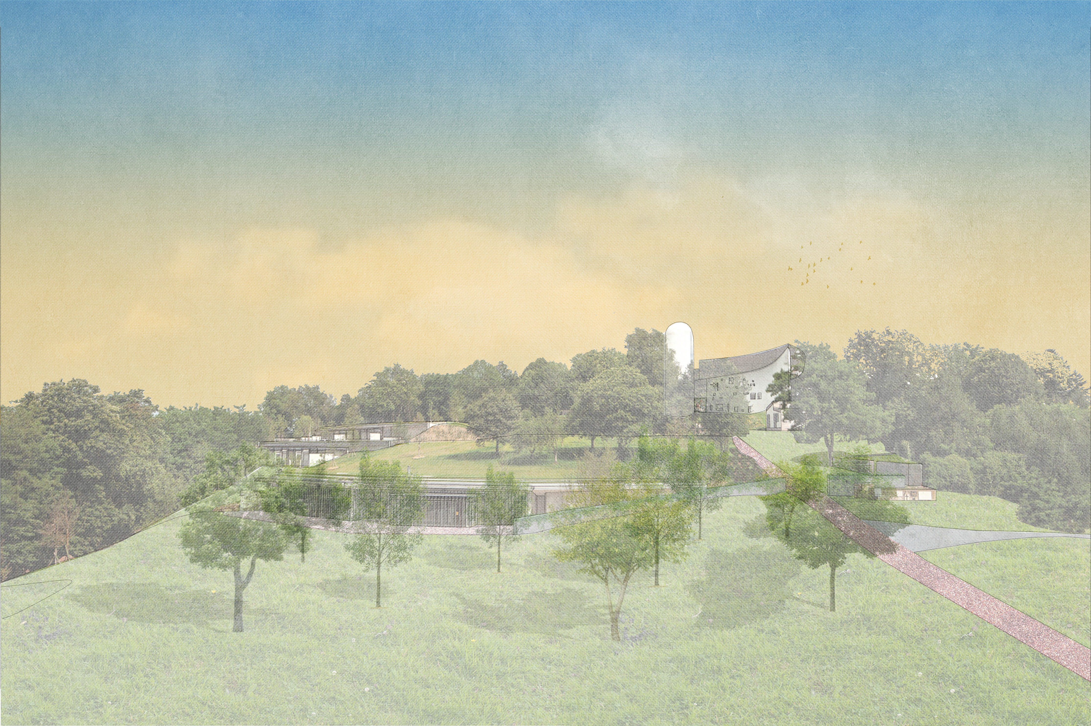 Si le village de Ronchamp est réputé pour son passé minier et industriel, il est surtout connu pour sa Chapelle, construite par Le Corbusier entre 1953 et 1955. Fraîchement labellisé “Patrimoine mondial de l'UNESCO”, l'édifice sacré laisse présager un nouvel afflux touristique et suscite des questions quant aux conditions d'accueil des visiteurs. Si le monument ne pose pas de problème en tant que tel, les récentes constructions de Renzo Piano (un couvent, une porterie et un parking) implantées au pied de la Chapelle sont fortement critiquées par les experts de l'ICOMOS, qui dénoncent un conflit avec le monument et une altération du lieu. De plus, l'emplacement de ces programmes n'encourage pas les visiteurs à s'arrêter dans le village, ce qui fait que ce dernier ne profite pas de la notoriété de l'icône corbuséenne. Ainsi, ce travail propose une stratégie d'intervention globale qui vise à exploiter davantage le potentiel et les atouts du village en remédiant à la fois aux différentes faiblesses du site. Le parcours du visiteur est ainsi requalifié en renforçant les connexions entre les différents pôles touristiques et en déplaçant et revalorisant certains programmes. Tout cela en vue de rendre, d'une part, son authenticité aux abords immédiats de la Chapelle et, d'autre part, d'encourager le visiteur à réinvestir le cœur du village.