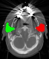 This paper presents the segmentation of bilateral parotid glands in the Head and Neck (H&N) CT images using an active contour based atlas registration. We compare segmentation results from three atlas selection strategies: (i) selection of “single-most-similar” atlas for each image to be segmented, (ii) fusion of segmentation results from multiple atlases using STAPLE, and (iii) fusion of segmentation results using majority voting. Among these three approaches, fusion using majority voting provided the best results. Finally, we present a detailed evaluation on a dataset of eight images (provided as a part of H&N auto segmentation challenge conducted in conjunction with MICCAI-2010 conference) using majority voting strategy.