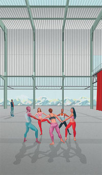 La centrale thermique de Chavalon, construite en altitude par préoccupation environnementale, domine la vallée du Rhône et est visible dans un rayon de 20 km, de Bex à Vevey. Construite en 1965, elle fermera définitivement ses portes en 1999, après trente-cinq ans d'activité. Tout le monde connaît “le monstre”. Il inspire des sentiments contradictoires, entre rejet et fascination. Visible de loin tel un phare, il est l'un des monuments emblématiques du Chablais. Le site bénéficie d'un grand potentiel avec sa surface de 75'000 m2. Il est composé de deux plateformes sur lesquelles sont érigées l'usine et les tours de refroidissement, de dix-sept villas en contre-bas et d'une infrastructure qui le relie à la plaine en quatre minutes. Le projet de reconversion propose en premier lieu d'en faire un lieu ouvert, accessible au public, connecté au territoire. L'idée est d'amener une densité programmatique sur le site: tourisme, culture, espaces de travail et de création, loisirs. Cette superposition permet de résoudre la question cruciale de son occupation: à l'échelle d'une journée, d'une semaine, d'un mois ou d'une saison. Il a d'abord fallu résoudre la question de la mobilité. La nouvelle arrivée du téléphérique, sur la plateforme principale, dessine un axe Nord-Sud, une grande avenue piétonne qui traverse le site sur toute sa longueur, qui devient le cœur vivant du projet. L'enjeu a ensuite été de démontrer que ces structures industrielles, a priori sans intérêt, avaient en réalité un vrai potentiel en terme de diversité et de qualité des espaces. Des qualités obtenues à partir de l'existant, sans avoir recours à des interventions lourdes ou coûteuses.