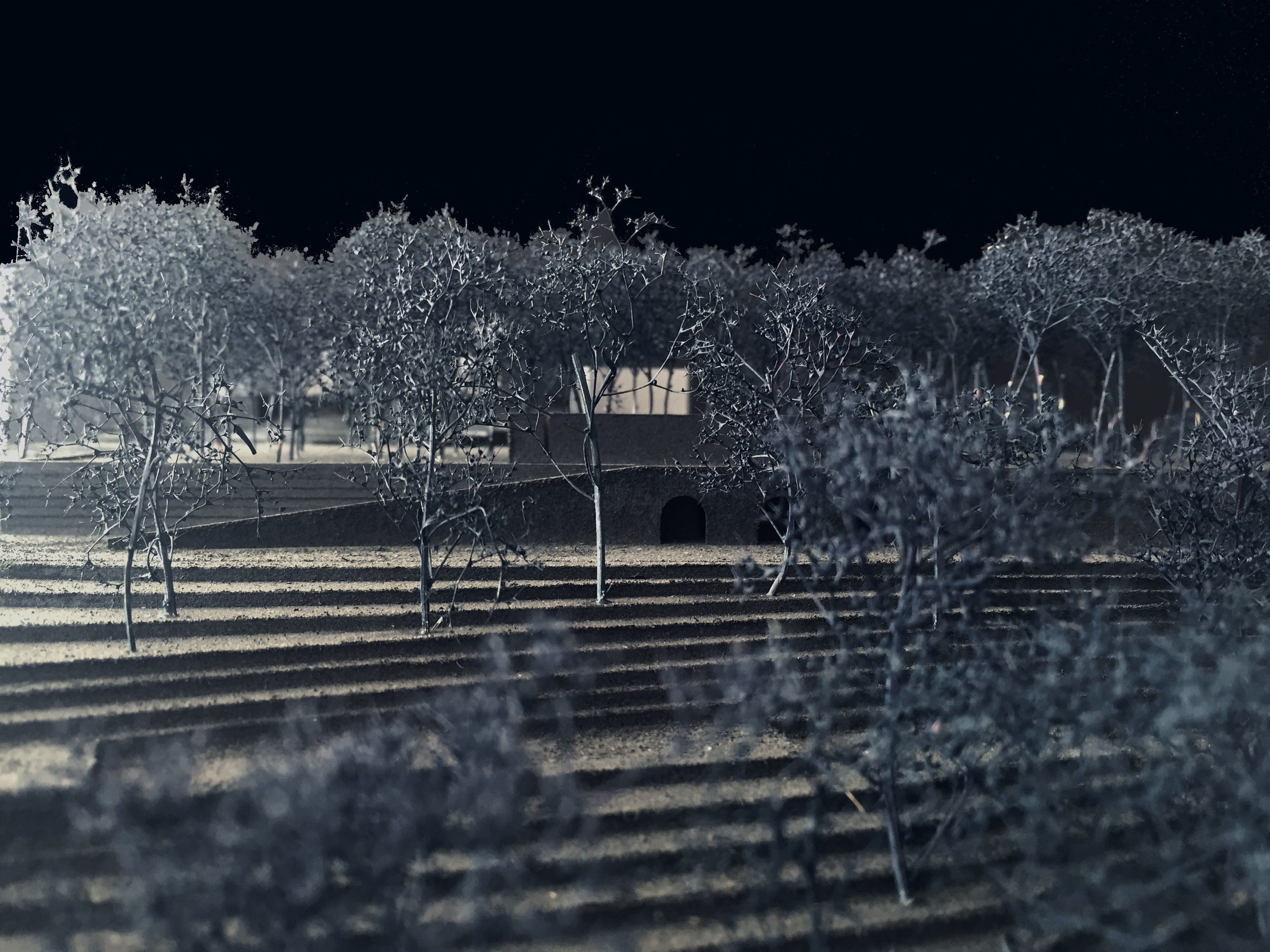La ville de Florence, après la décision politique d'accueillir la capitale italienne de 1865, a subi une série de renouvellements urbains dessinés par Giuseppe Poggi. Ces interventions dessinées pour une capitale italienne ne sont malheureusement pas compatibles avec la logique et l'échelle urbaines propres à la ville de Florence. L'apex de ces interventions est la piazzale Michelangelo – aussi le site de ce projet. Le projet consiste à retrouver l'esprit florentin de ce lieu. D'abord, en couvrant la grande surface de la place avec une petite forêt (env. 160 x 70 m), nous nous replongeons dans l'ambiance de cette colline avant l'introduction de la grande place. Ensuite, en creusant dans la profondeur de la terre, nous descendons au milieu du bois dans un espace mystérieux qui nous rappelle les ambiances propres à la ville de Florence. Les rues, la lumière, les ouvertures, les gens, les monuments, les idéologies urbaines de Brunneleschi ..., etc. Seul, le silence, la forêt et cet espace creusé dans la terre coexistent avec les visiteurs, une histoire mentale florentine se développe chez chacun ...