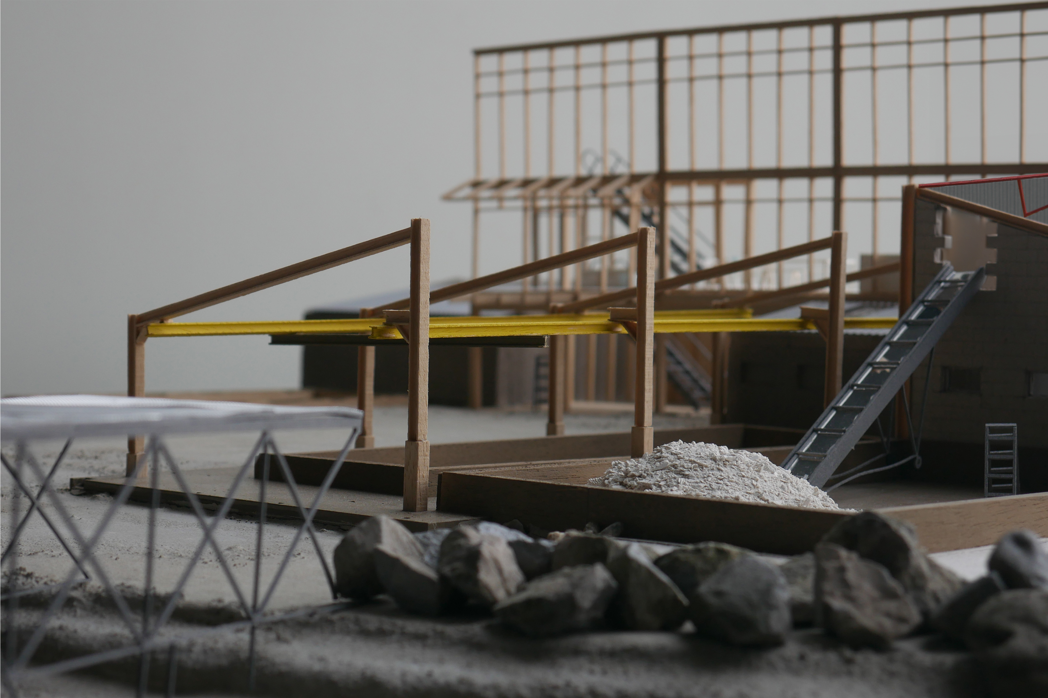 North of La Rochelle, the Baie de l'Aiguillon bears witness to a structurally invasive past, partially camouflaged in its shallow waters. 400 hectares of abandoned oyster beds locally known as crassats, remnants of the shellfish industry, lie in the intertidal zone. In recent years, this anthropized space favoured the incursion of non-native species which prevents other molluscs from developing. As a result, the bay's biodiversity has been impoverished on many levels. Decades after the first signs of neglect, a territorial program was finally put in place, co-financed by the European Commission and the French government, to preserve, restore and enhance habitats of ecological importance. Home with what remains continues this investigation into the reversal of intertidal colonisation. The project's priority is to make the most of what already exists, both at sea and on land, considering rural ports as (almost) ready-to-use infrastructure for cleaning and distribution. A sensible itinerary for end-of-life materials extracted from the bay has been devised in conjunction with the creation of a single new building onsite: a sorting-house whose form and program mirror the sequence in which piles and shells – among other debris – are removed from the silt. A home for a new generation of sea gardeners, whose right of occupancy is established through practices of care. The plan is for all the buildings – some of which will be transitional – to be involved in cleaning up and then maintaining the area. While workers continue tending to the sea, the waste extraction appendage moves elsewhere on the coast to attend other threatened maritime ecologies. A virtuous circle of care and homemaking.