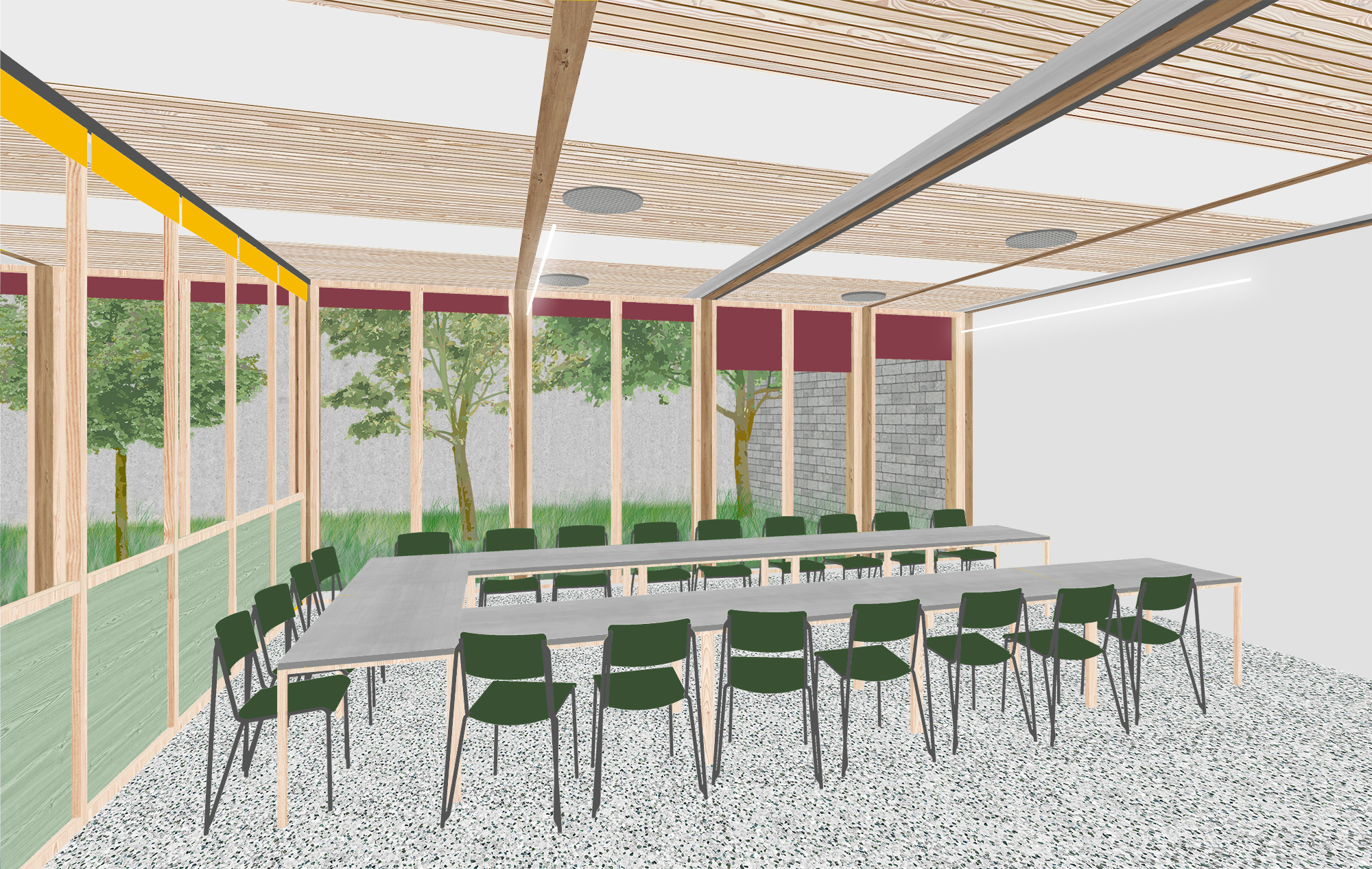 Courant 2020, une pandémie liée à la propagation d’un nouveau coronavirus a dévoilé les limites des compétences infrastructurelles de nos systèmes de santé. Afin d’augmenter, dans l’urgence, la capacité en lits de soins intensifs et continus, des structures temporaires ont été érigées ou aménagées. Ces épisodes impérieux sont susceptibles de se répéter à l’avenir, l’ambition du projet est donc de compléter la disponibilité des hôpitaux en situation d’urgence sanitaire par un modèle plus durable, qualitatif et réactif. L’hôtel de l’Ours se situe à Lausanne, à quelques mètres des urgences du Centre Hospitalier Universitaire Vaudois. Cet hôtel est transformé et agrandi dans l’optique d’accueillir une mixité programmatique. En temps serein, l’établissement accueille client.e.s, touristes, visiteur.euse.s mais aussi des patient.e.s nécessitant des soins de réhabilitation ou une assistance médicale légère. En temps de crise, l’hôtel se mue en un hôpital équipé permettant la prise en charge de patient.e.s en soins intensifs et continus. Sa proximité avec le CHUV lui permet une réactivité accrue. La dent creuse, initialement générée par une ancienne station service à l’arrière de l’hôtel, permet l’agrandissement de ce dernier et y connecte un jardin jadis confiné au sein d’un îlot bâti. Une coursive de circulation couture les trois différents éléments bâtis au rez-de-chaussée et génère, en son centre, un jardin paisible, isolé de l’agitation urbaine.